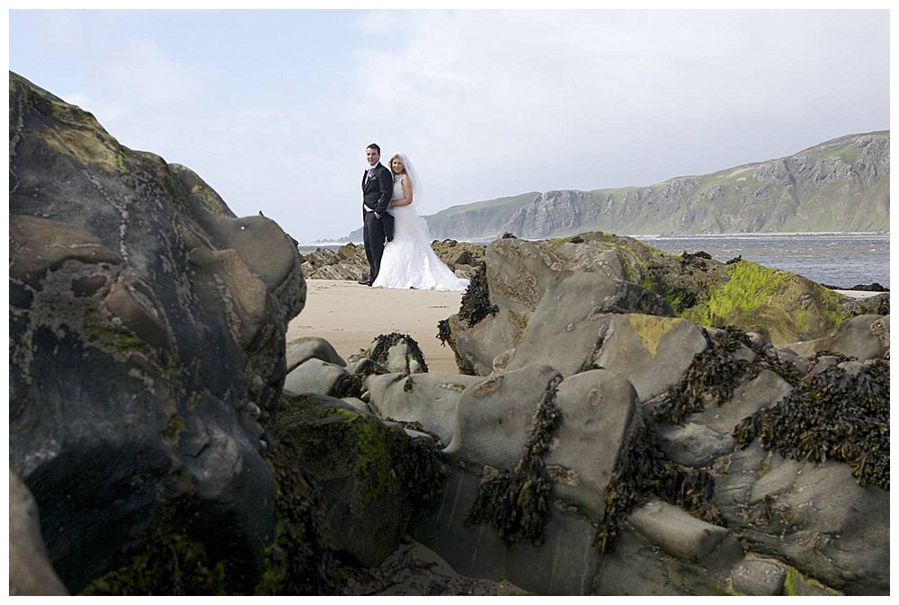 Ceremony over, Laura & Sean weren’t going to let a little ‘weather’ stop them heading to the beach on the Isle of Doagh. They’d come a long way to get married here, they weren’t giving up on their wish to have the wild Donegal landscape feature as the setting for at least some of their wedding photographs.